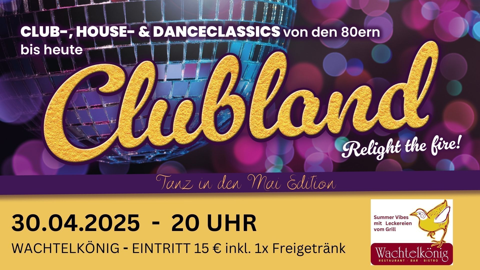 Feiert mit uns in den Mai - mit guter Musik und bester Stimmung. *30.04.2025* *20.00 Uhr* Ab 20.00 Uhr gibt es frisch gegrillte Bratwurst im Brötchen. Wenn Ihr vorher aus der Speisekarte etwas essen möchtet, reserviert gern einen Tisch bei uns. Tickets im Vorverkauf im Wachtelkönig oder im Atrium erhältlich.